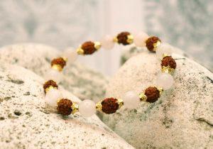Браслет Рудракша с Розовым кварцом, 18 бусин