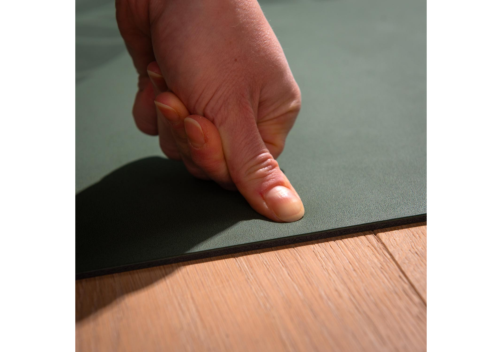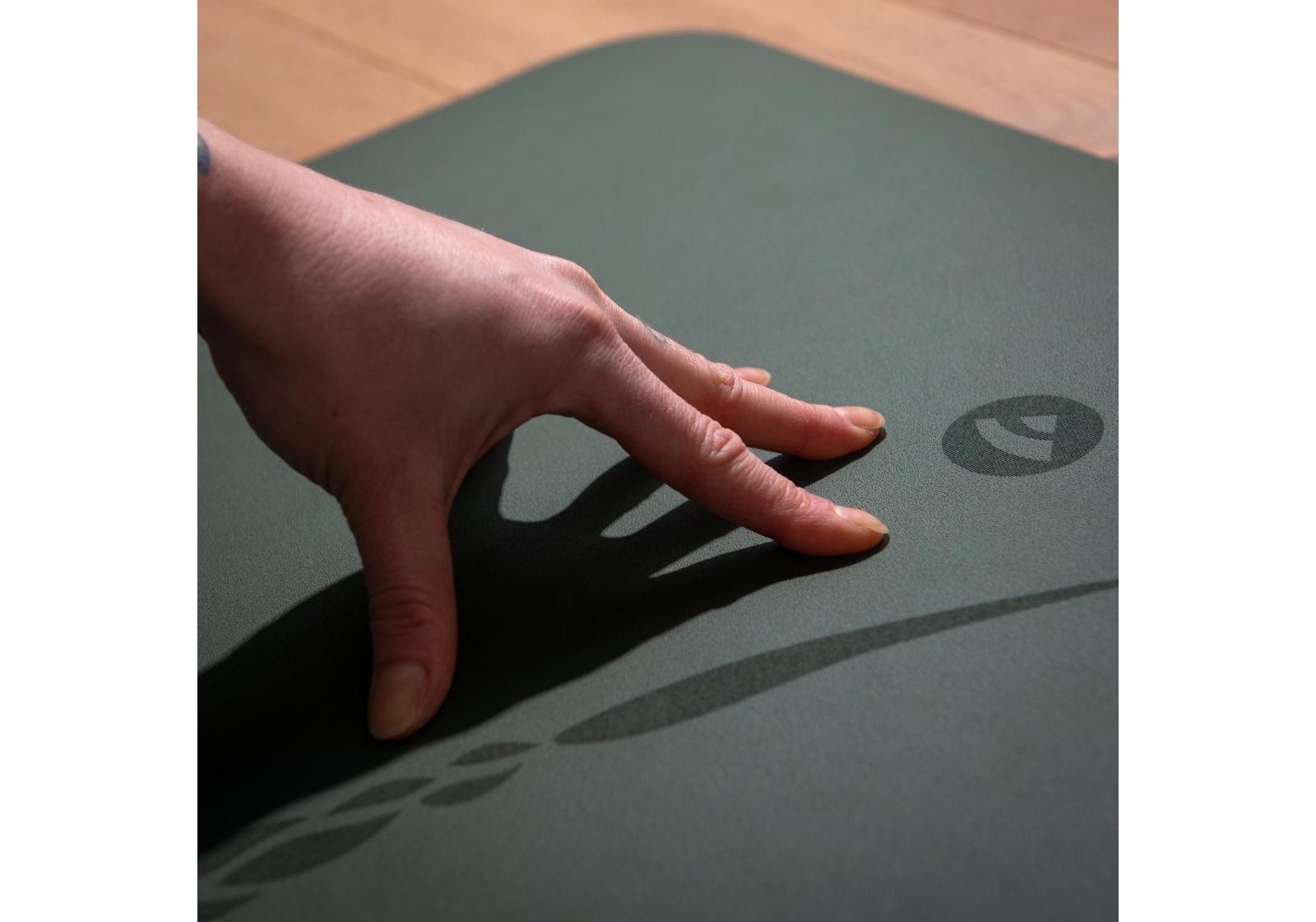 Верхний слой с PU-покрытием эффективно впитывает влагу, а основание из натурального каучука надёжно сцепляется с полом. Благодаря этому коврик остаётся устойчивым как под руками, так и на поверхности пола, обеспечивая безопасность и контроль в каждой позе.