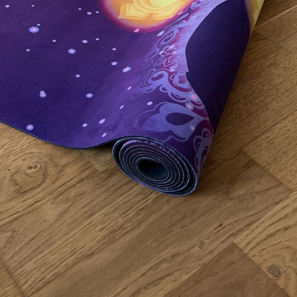 Каучуковый йога-мат Sitara с микрофибровым ультра-абсорбирующим верхним слоем предназначен для интенсивных практик йоги, а также тех, кто требует повышенной устойчивости при влажных ладонях.