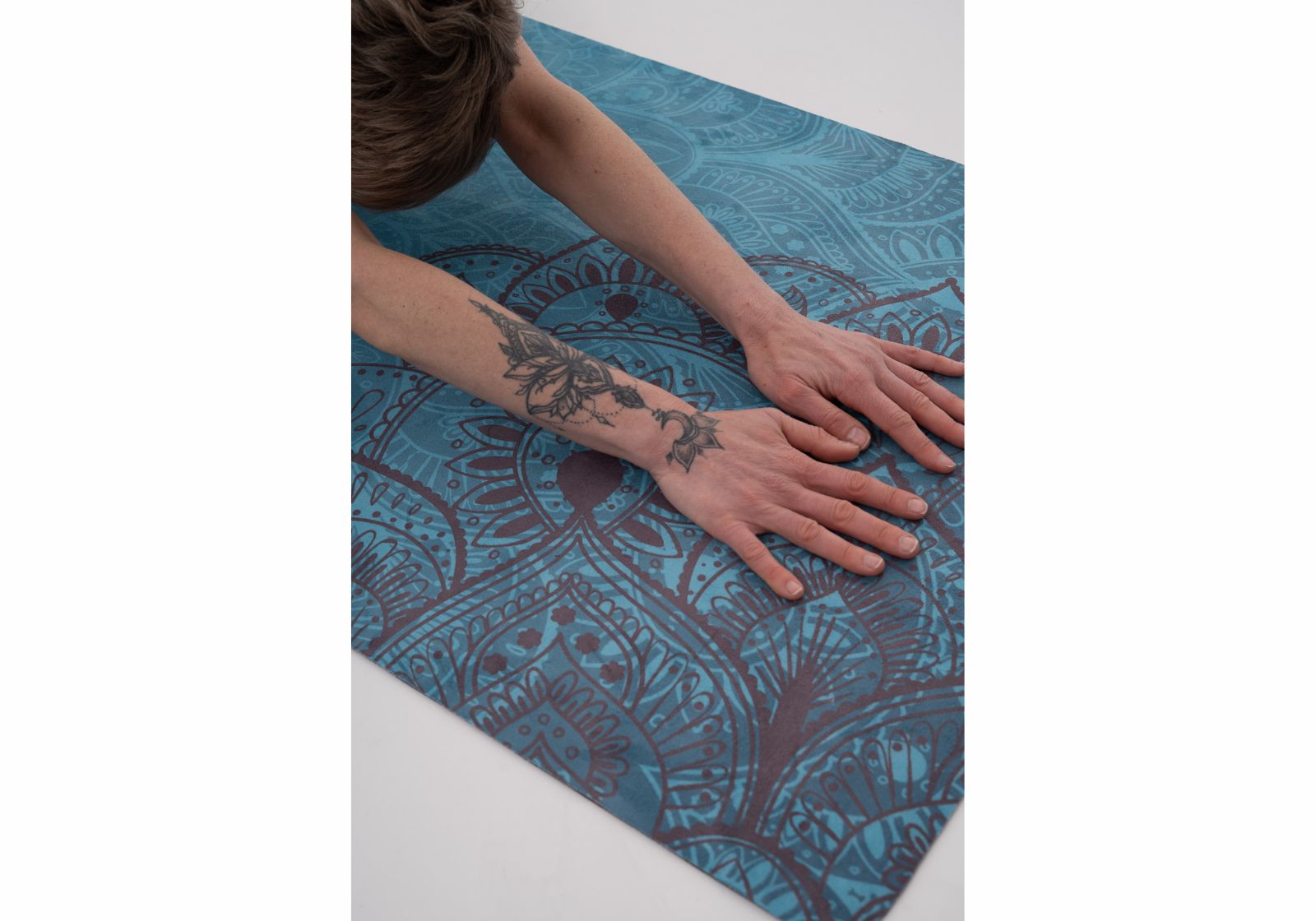 При намокании не скользит. Идеально подходит для горячей йоги, бикрам или силовой йоги, так как поверхность из микрофибры отлично впитывает влагу.