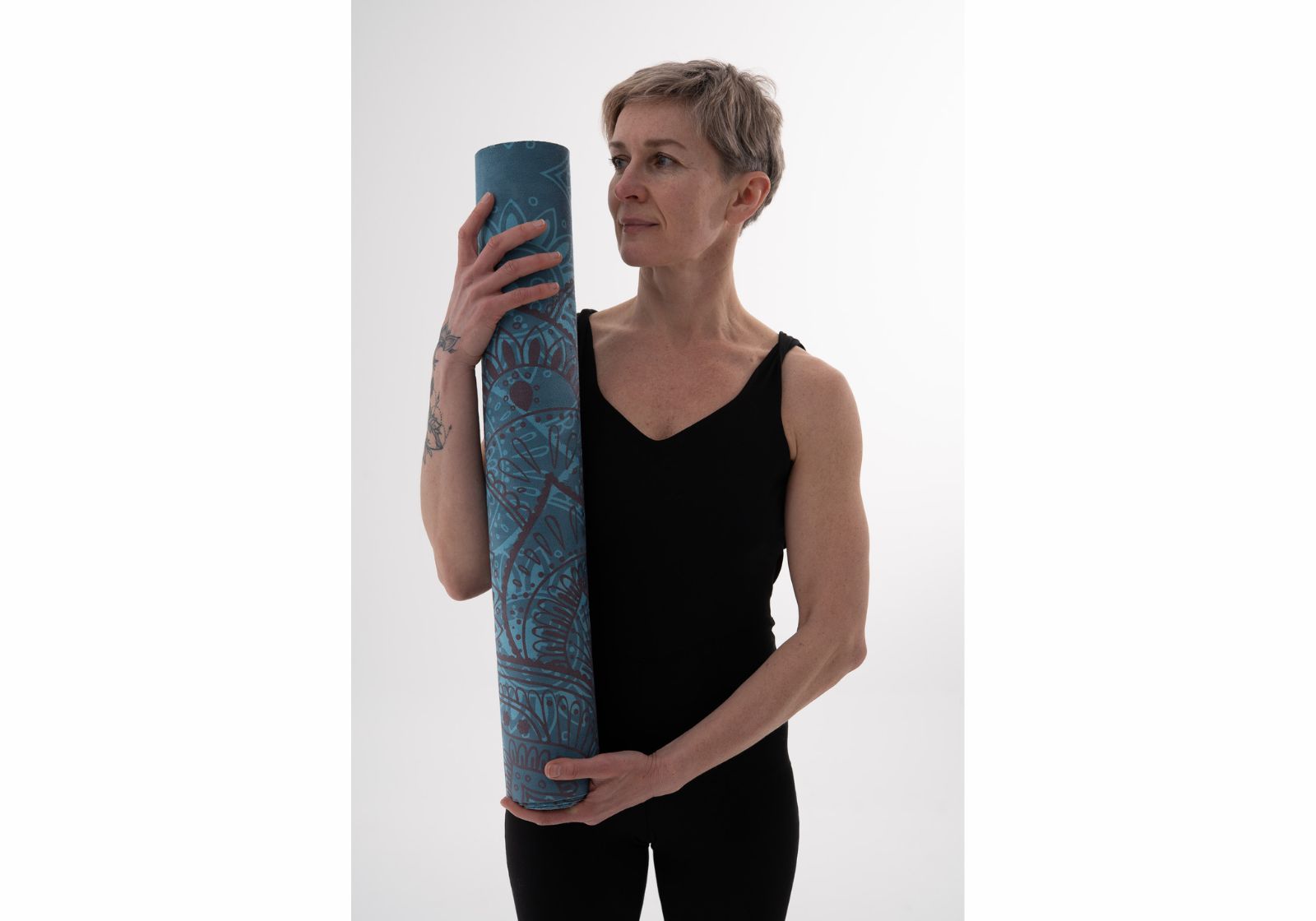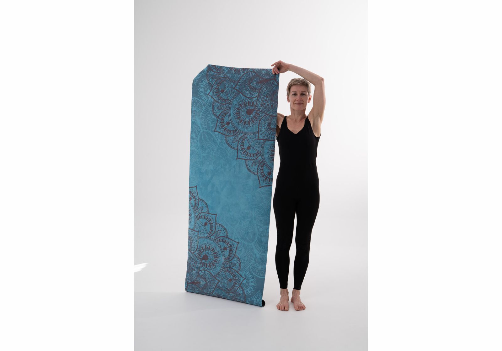 Каучуковый йога-мат Sitara с микрофибровым ультра-абсорбирующим верхним слоем предназначен для интенсивных практик йоги, а также тех, кто требует повышенной устойчивости при влажных ладонях.