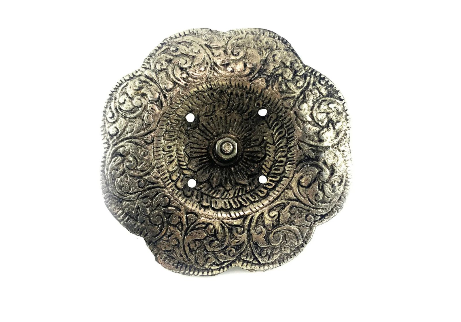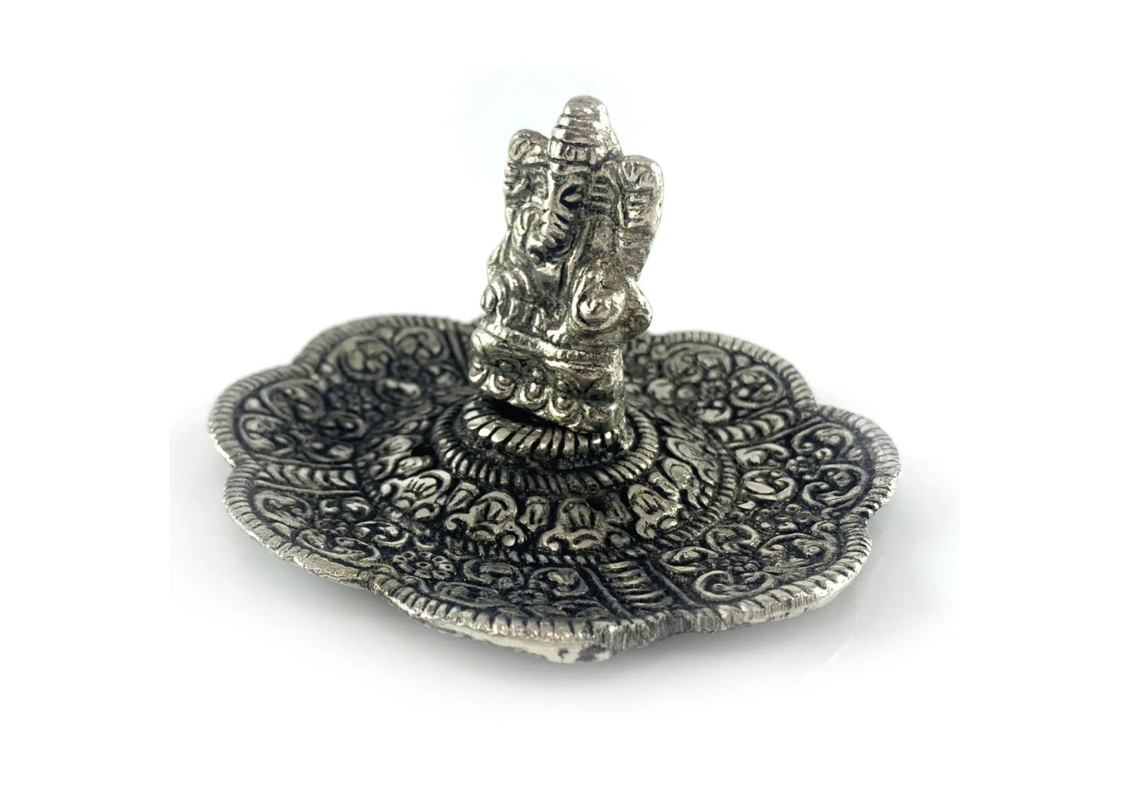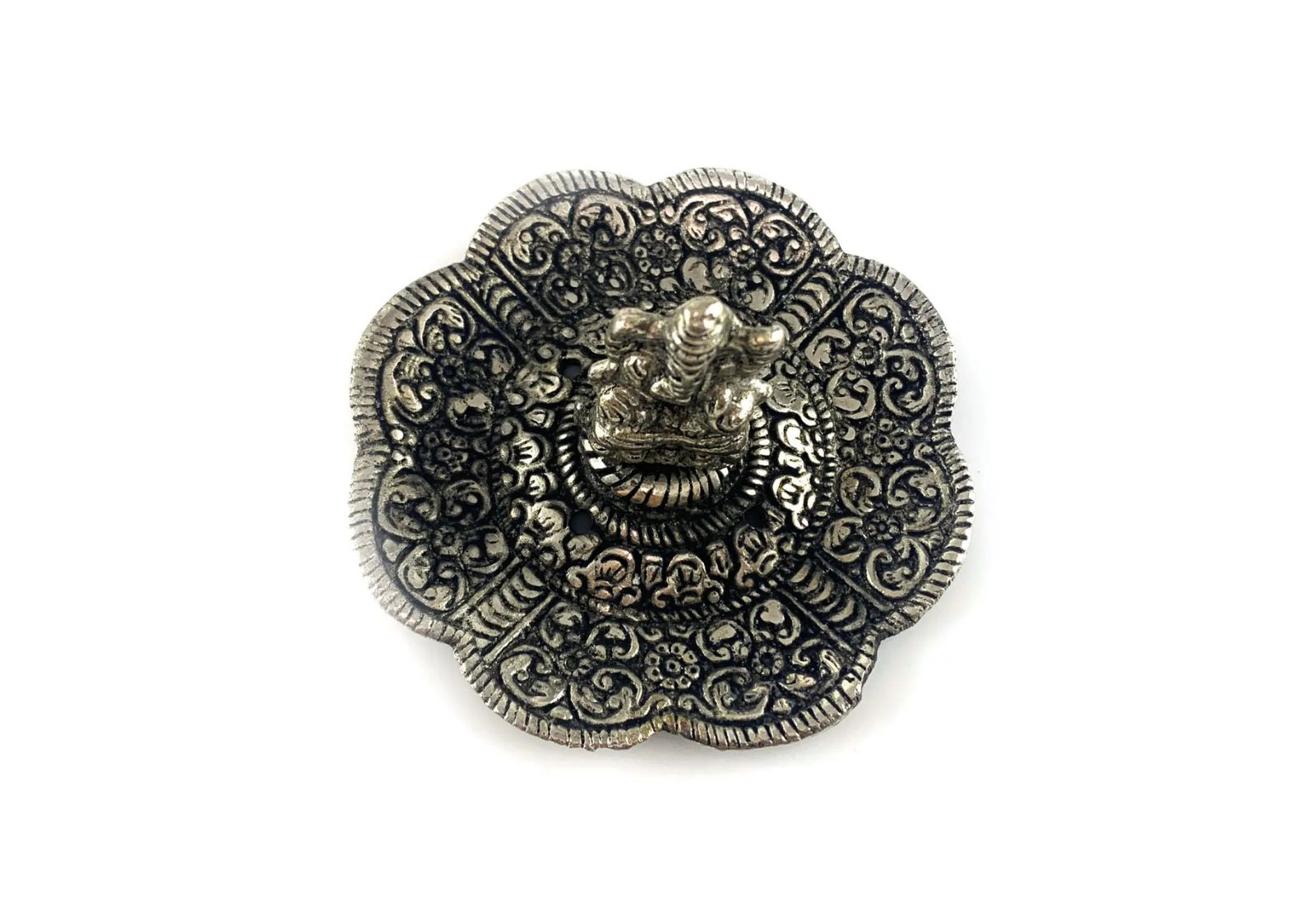 Ажурная чаша из прочного металла устойчива к нагреву, долговечна и легко очищается. Элегантные узоры и серебристое покрытие придают подставке благородный вид, делая её стильным элементом декора и духовной практики.