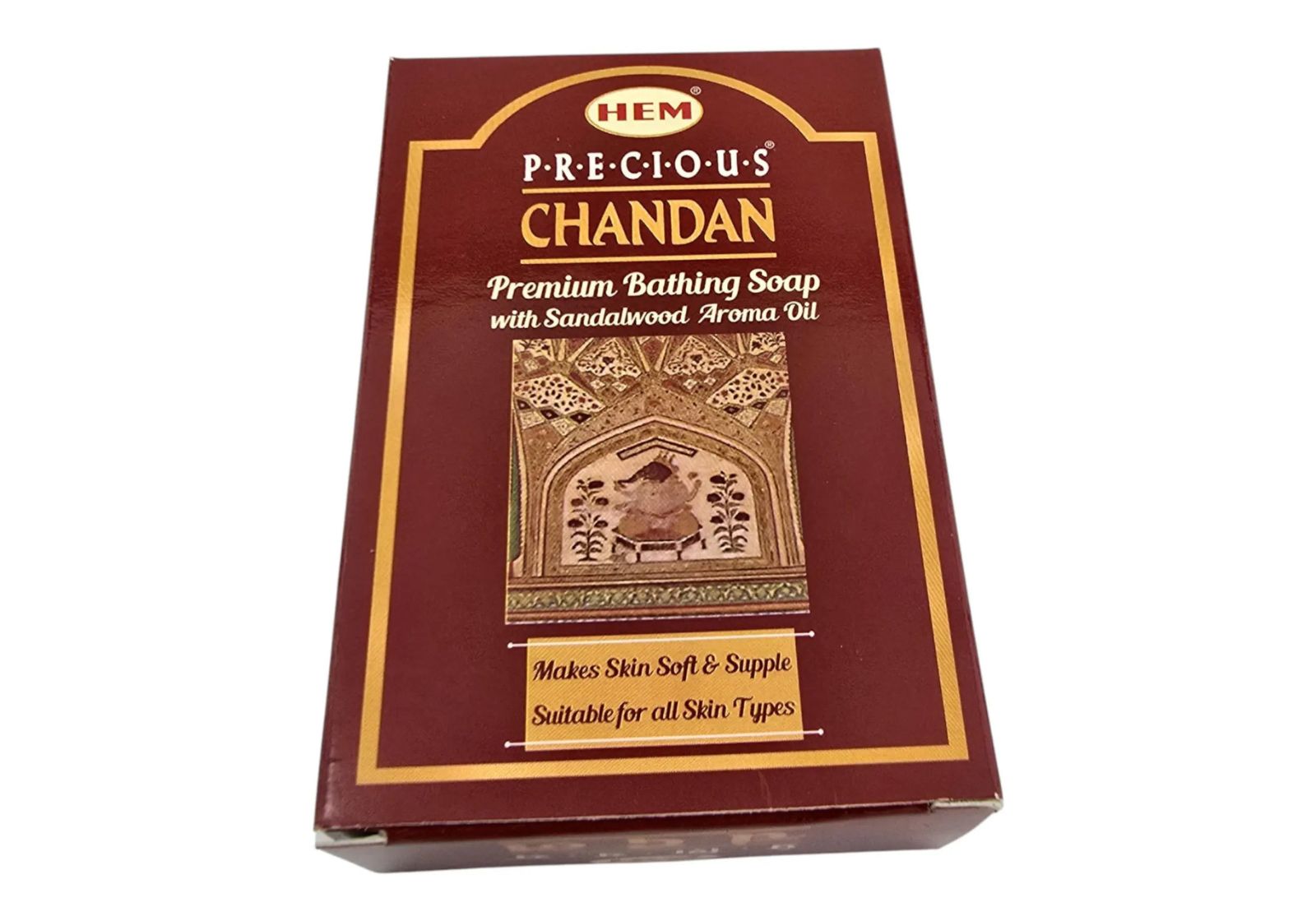 HEM Precious Chandan — твердое туалетное мыло с мягким очищающим действием и теплым восточным ароматом сандала. Производится индийской компанией HEM Corporation Pvt. Ltd. на основе натуральных компонентов и аюрведических традиций.
