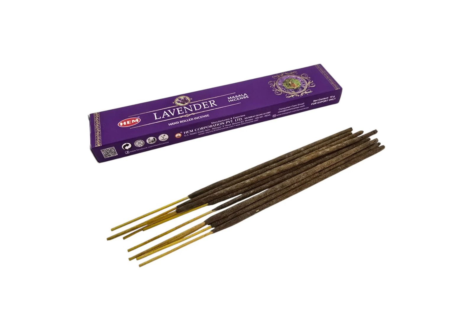 Lavender (Лаванда) — классические масала-палочки с добавлением натурального эфирного масла лаванды. Их цветочный, мягкий аромат расслабляет, снимает стресс и помогает настроиться на спокойный сон.