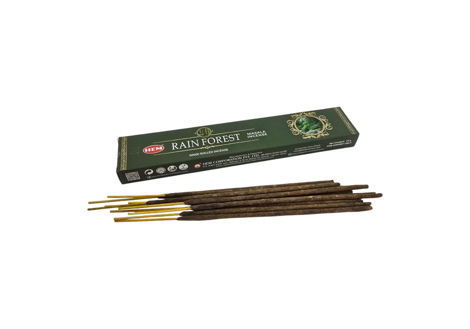 Rain Forest (Дождевой лес) — ароматические палочки, изготовленные из смеси древесной стружки, трав и эфирных масел. Запах свежего влажного леса с оттенками зелени и земли напоминает атмосферу дождевого утра в тропиках.