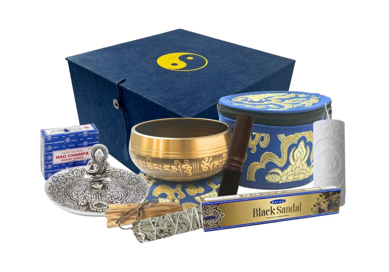 Каждый элемент — продуманная деталь, которая усиливает главный инструмент набора — поющую чашу из Непала.