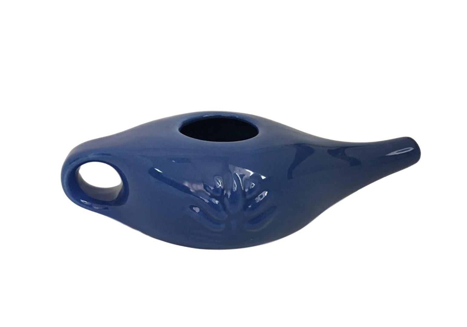 Нети-пот из качественной керамики, покрыт цветной глянцевой глазурью с лотосом. Размер 19 х 9 х 6 см.