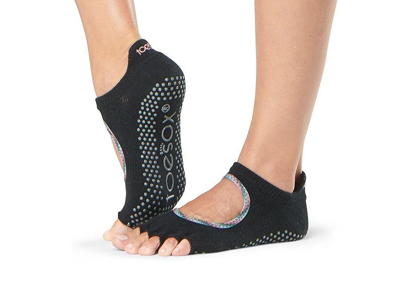 Модель носков для йоги Bellarina от производителя ToeSox с открытыми пальцами и верхней частью стопы не сковывает движений, что удобно для динамических асан. Эти носочки обеспечивают дополнительный комфорт и защиту ахиллова сухожилия.