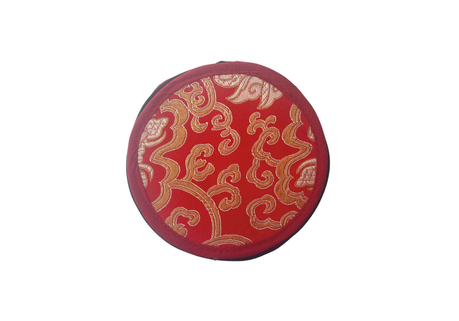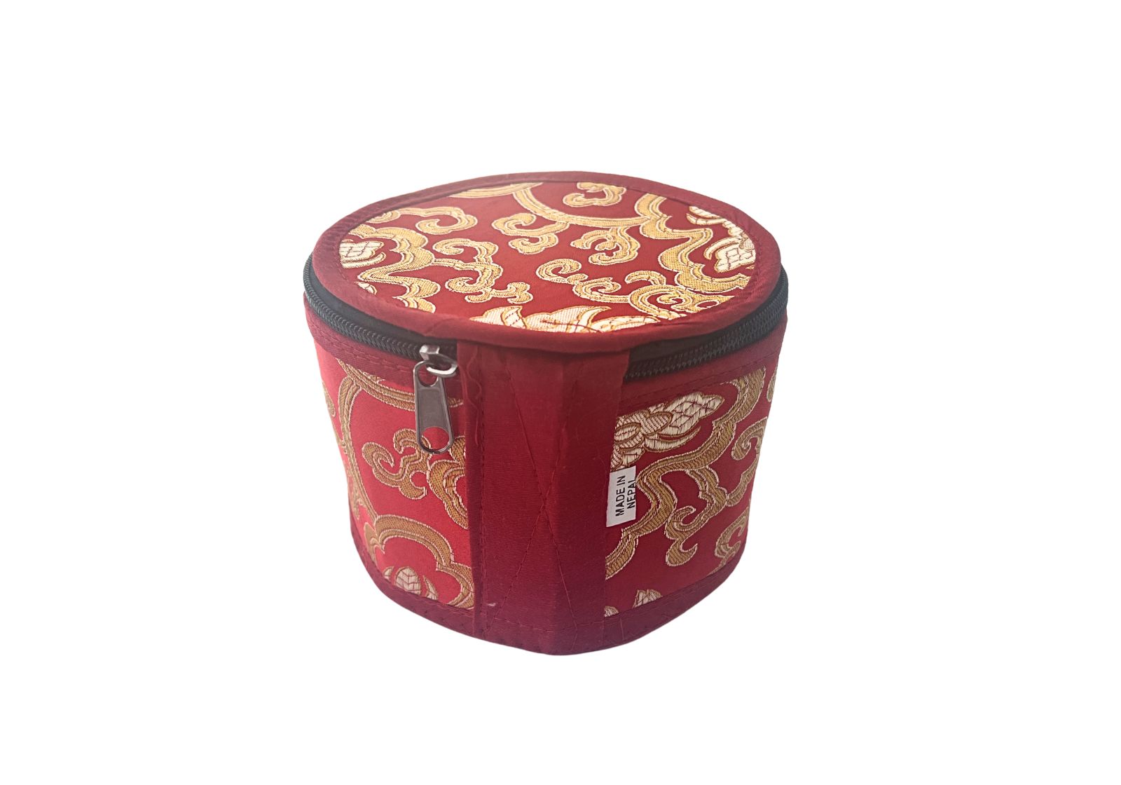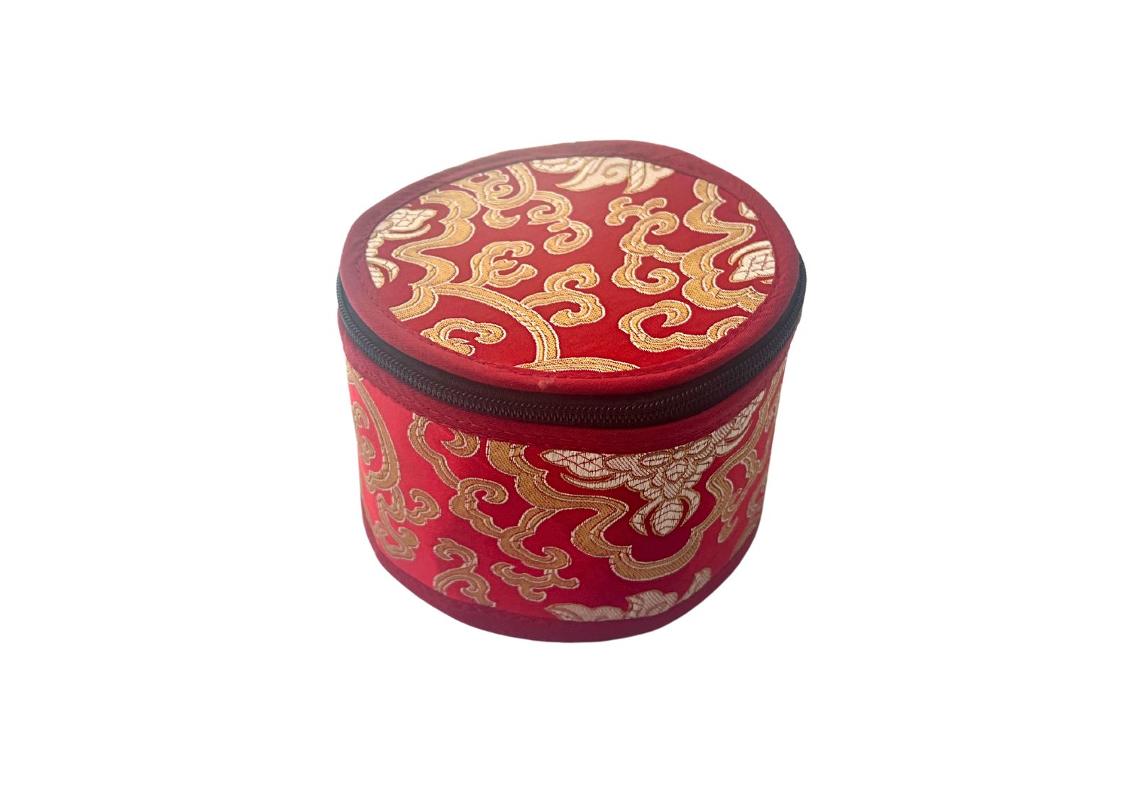 Парчовый бокс диаметром 14 см и высотой 10 см – это идеальное решение для безопасного хранения и транспортировки поющих чаш. Изготовлен из плотной ткани с традиционными узорами в стиле Тибета, он не только защищает чашу от повреждений, но и добавляет сакральной атмосферы к вашей практике.