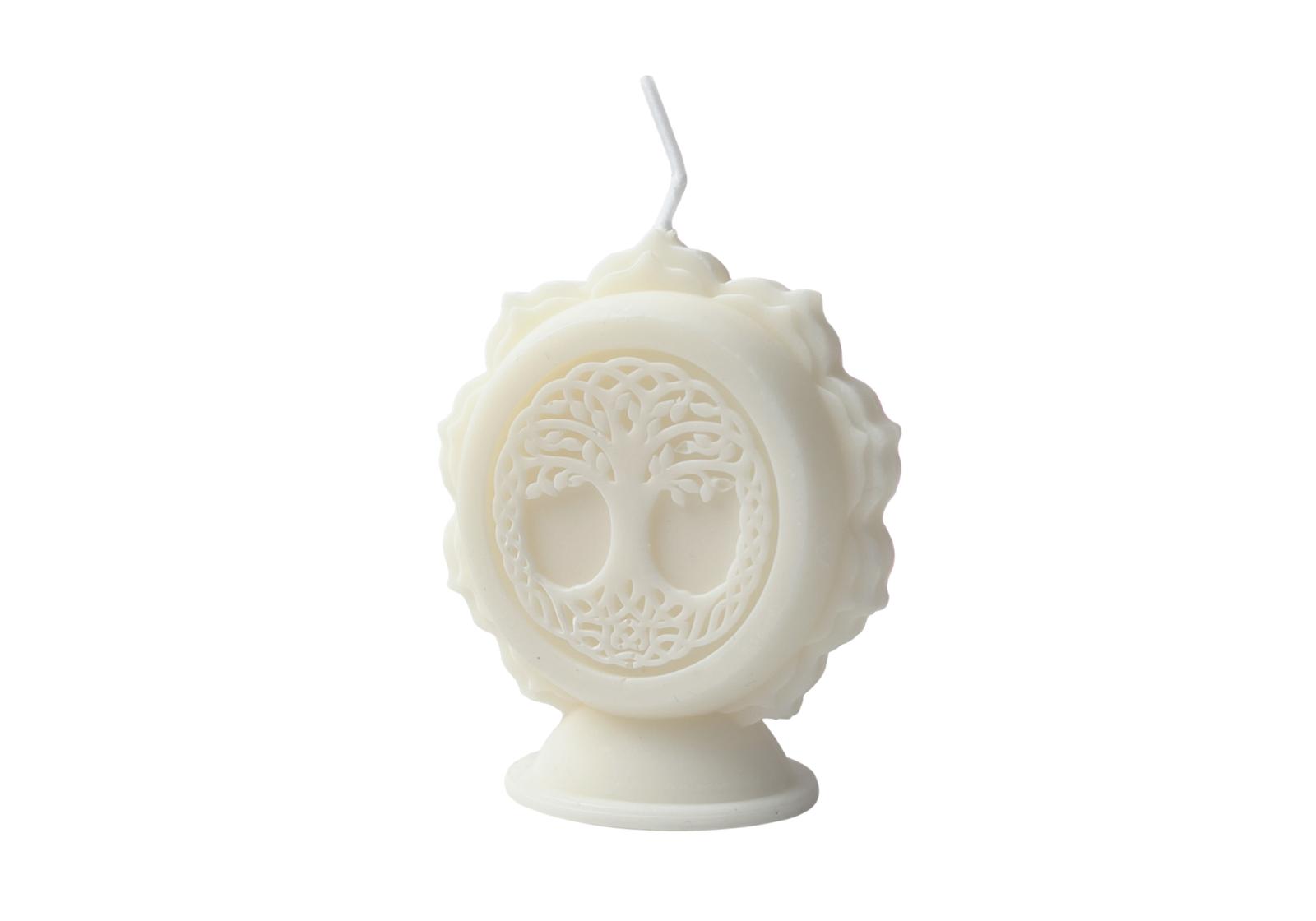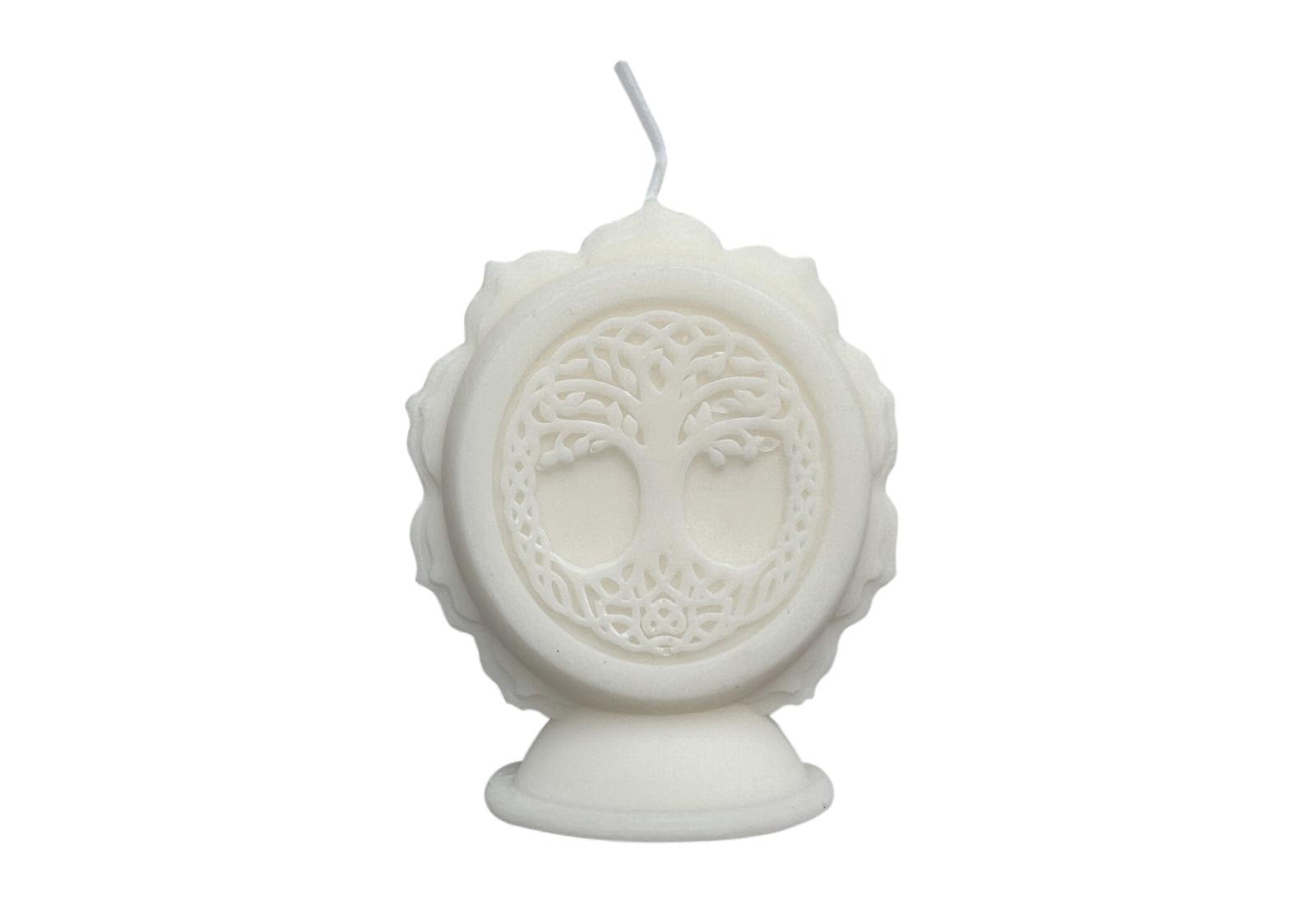 Свеча с символом «Дерево жизни» символизирует связь между небом, землей и подземным миром, олицетворяя непрерывность жизни, мудрость и гармонию. Корни дерева символизируют наши начала, ствол – нынешний путь, а крона – стремление и связь с божественным. Горящий огонь свечи придает символу смысл очищения, трансформации и духовного просветления. Такая свеча может использоваться как оберег, средство для медитации или подарок.