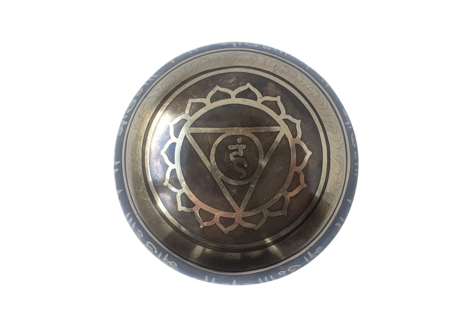 Чакра Вишудха (на внешней стороне чаши) – символ горловой чакры, отвечающей за голос, честность и самовыражение. Гармонизация Вишудхи способствует открытости, улучшению коммуникативных навыков и обретению внутренней уверенности. Вибрации чаши очищают эту чакру, помогая свободно выражать мысли и эмоции.