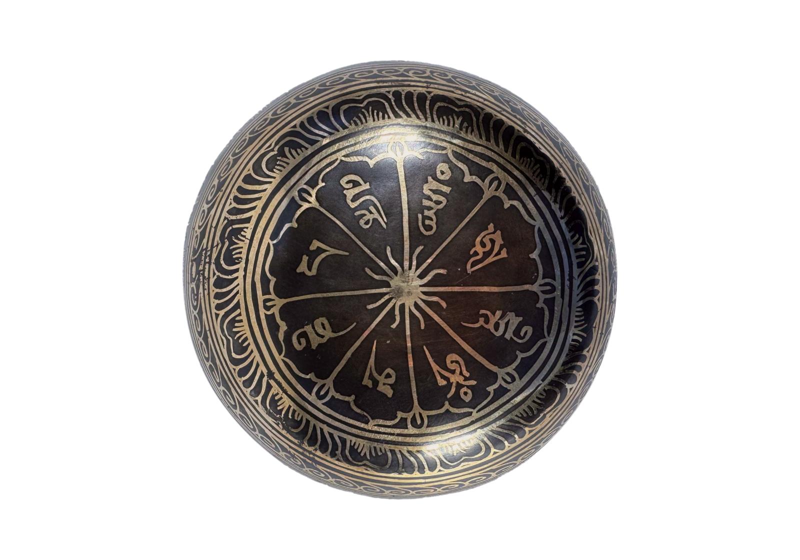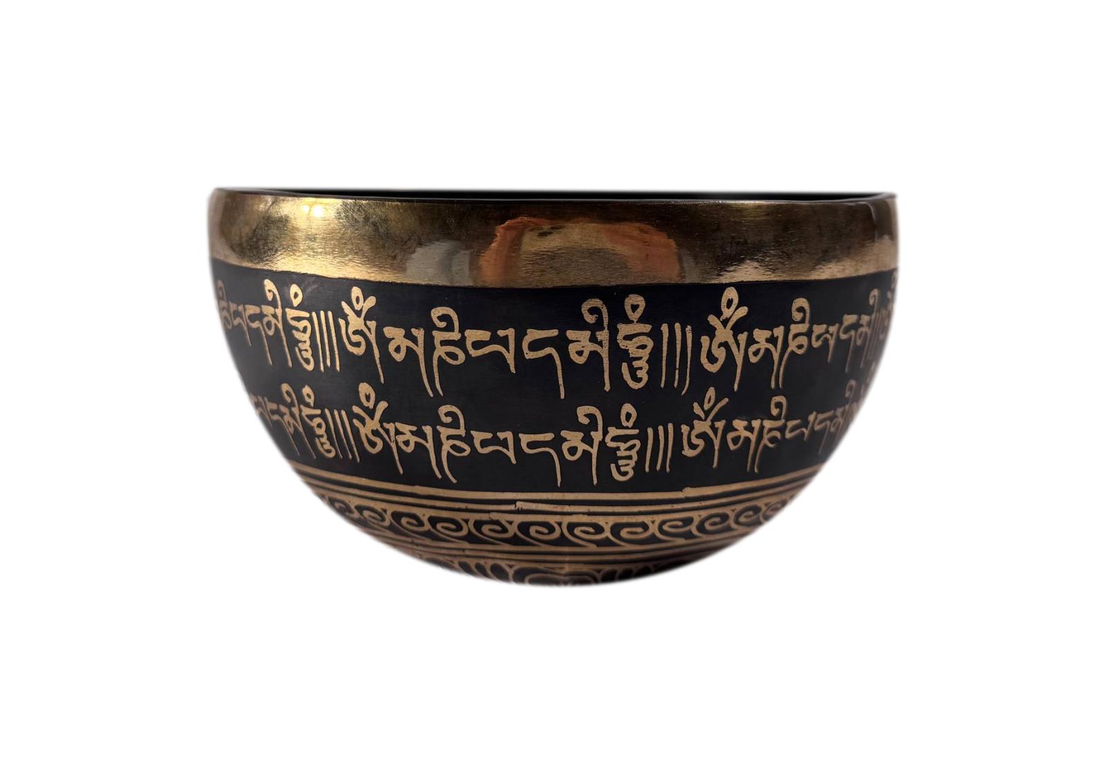 Эта чаша является мощным вибрационным инструментом, в котором звук, форма и священная мантра создают единое поле гармонии. Тройное размещение мантры Ом Мани Падме Хум усиливает её влияние и делает чашу не просто музыкальным инструментом, а проводником очищающей энергии.