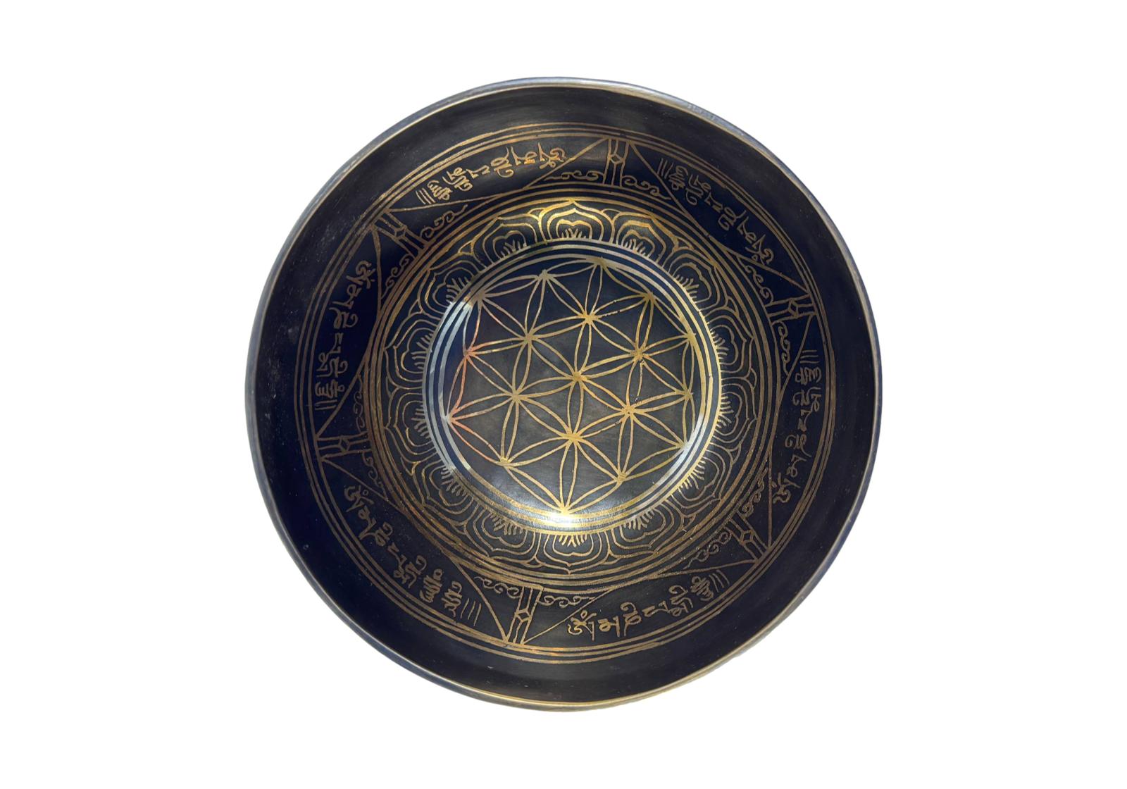 Эта поющая чаша объединяет в себе силу сакральной геометрии и многократно усиленную мантра-вибрацию. Благодаря диаметру 17,5 см она раскрывает глубокое, устойчивое и обволакивающее звучание, идеально подходящее для медитативных и терапевтических практик.