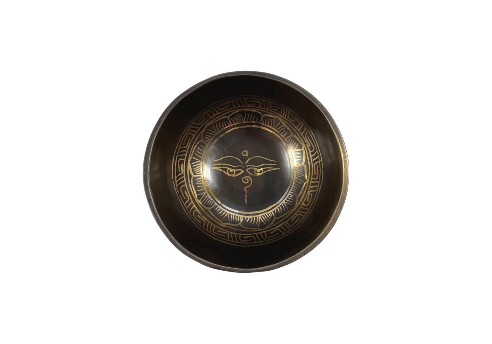 Глаза Будды часто можно увидеть на поющих чашах вместе с мантрой Ом мани падме хум – молитвой в тибетском буддизме.