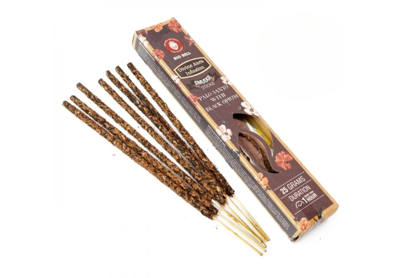 Ароматичні палички виготовлені з використанням пало-санто – священного дерева, що століттями мало популярність у корінних народів для духовного очищення та наповнення простору позитивною енергією. Посилює природну магію Palo Santo вишуканий аромат Black Opium. В результаті ви отримуєте глибокий, заземлюючий і одночасно огортає теплом аромат.