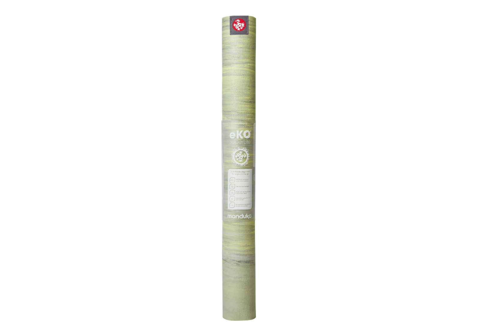 Йога-килимок eKO SuperLite Mat Limelight Marbled від відомого виробника товарів для йоги та фітнесу Manduka має надзвичайно малу вагу та габарити, що робить його дуже зручним і не обтяжуючим при перенесенні. Легко поміщається у будь-яку сумку чи рюкзак.