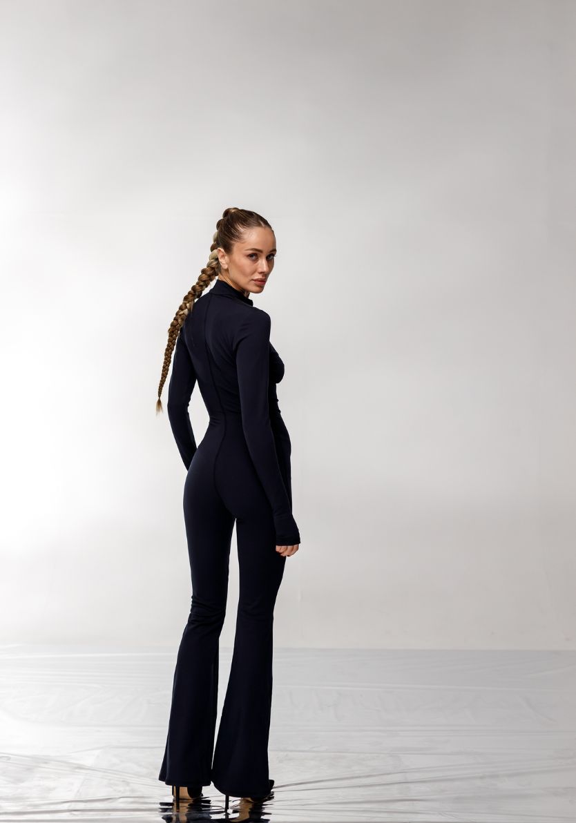 Комбінезон на блискавці для йоги та фітнесу щільно облягає тіло, немов друга шкіра, підкреслюючи вигини та природну красу фігури.