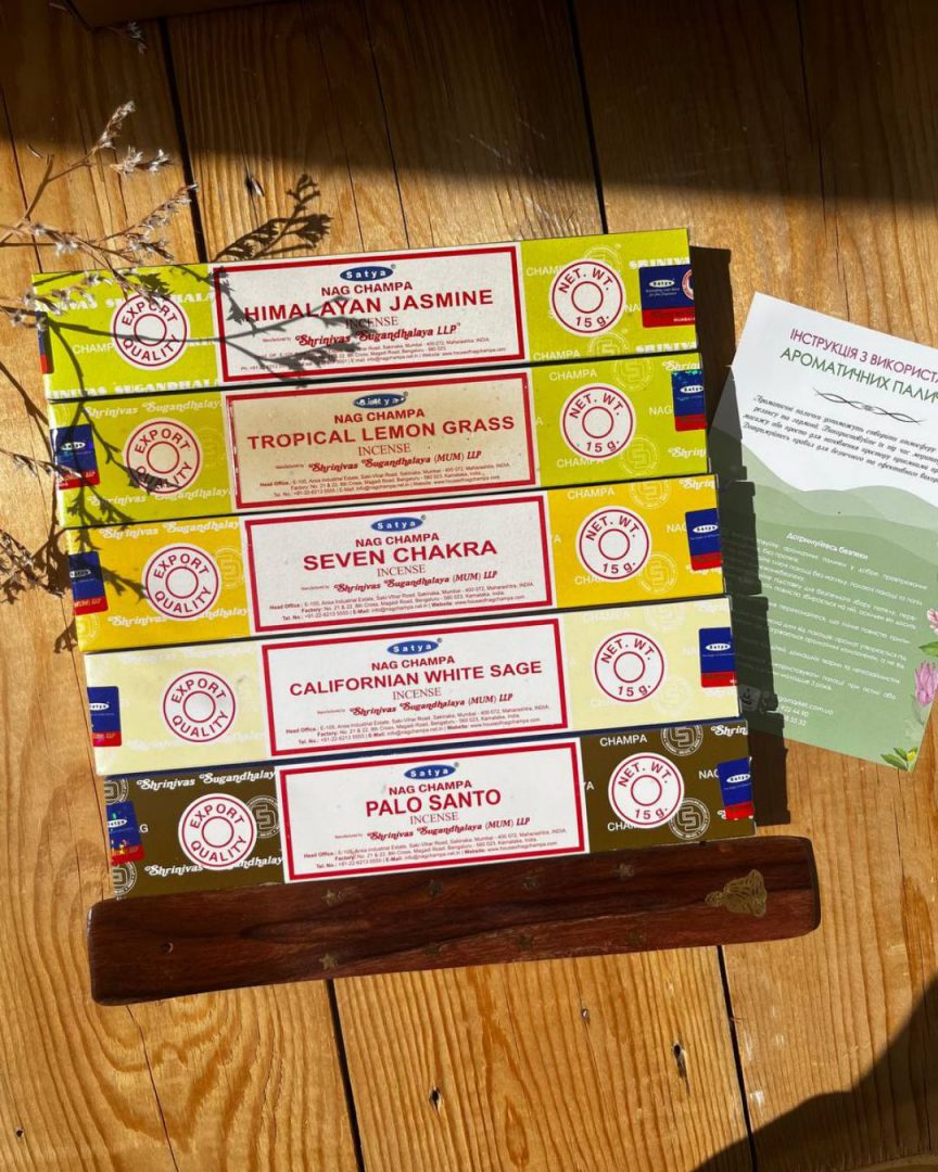 Набір Satya Energy — це гармонійне поєднання ароматів, які заряджають простір енергією, очищають його від негативу та наповнюють відчуттям спокою й натхнення. У комплекті представлені п’ять унікальних пахощів та стильна дерев’яна підставка (дизайн в асортименті) для безпечного спалювання пахощів.