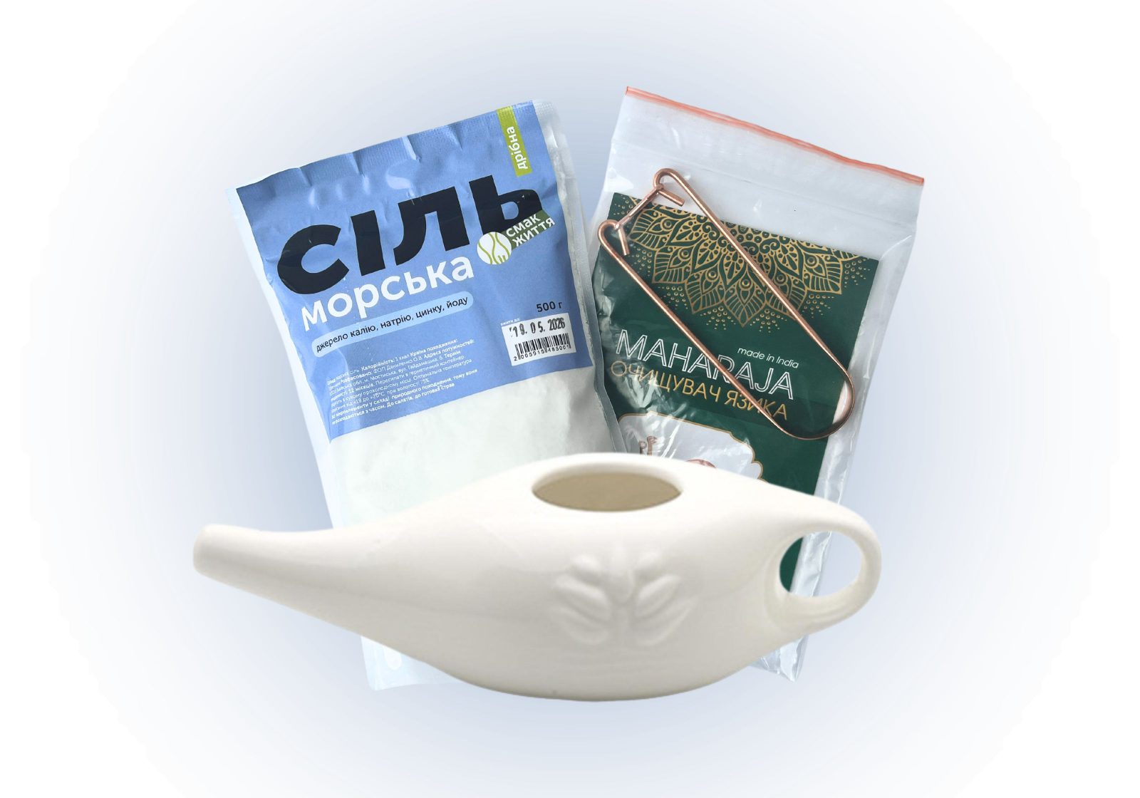 Скребок виготовлений із чистої міді, вважається більш гігієнічним, ніж пластиковий. Немає гострих граней, тому очищає дуже делікатно, не травмує слизову. Має практично необмежений термін використання. Згідно з аюрведою щоденна процедура очищення язика є необхідною для здоров’я ротової порожнини та позитивно впливає на роботу всього організму. Згідна з цим і сучасна медицина.