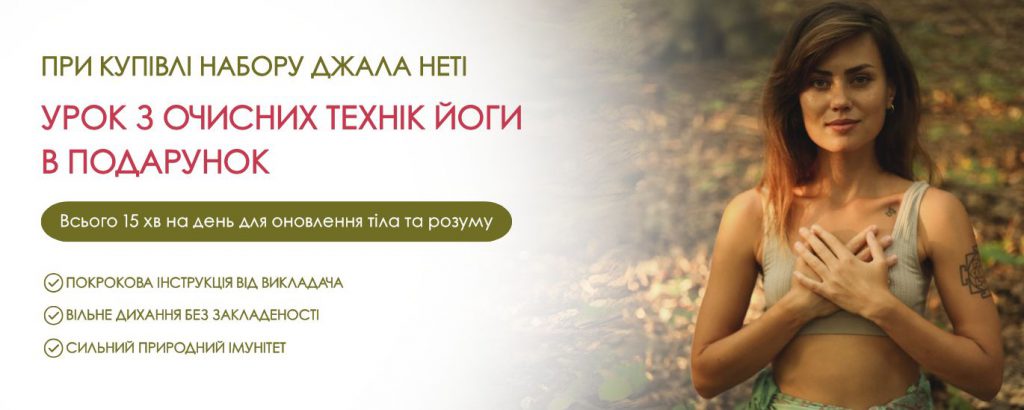 Разом із набором ви отримаєте відеоурок “6 очисних крій + пранаяма” з Оленою Лозинською.