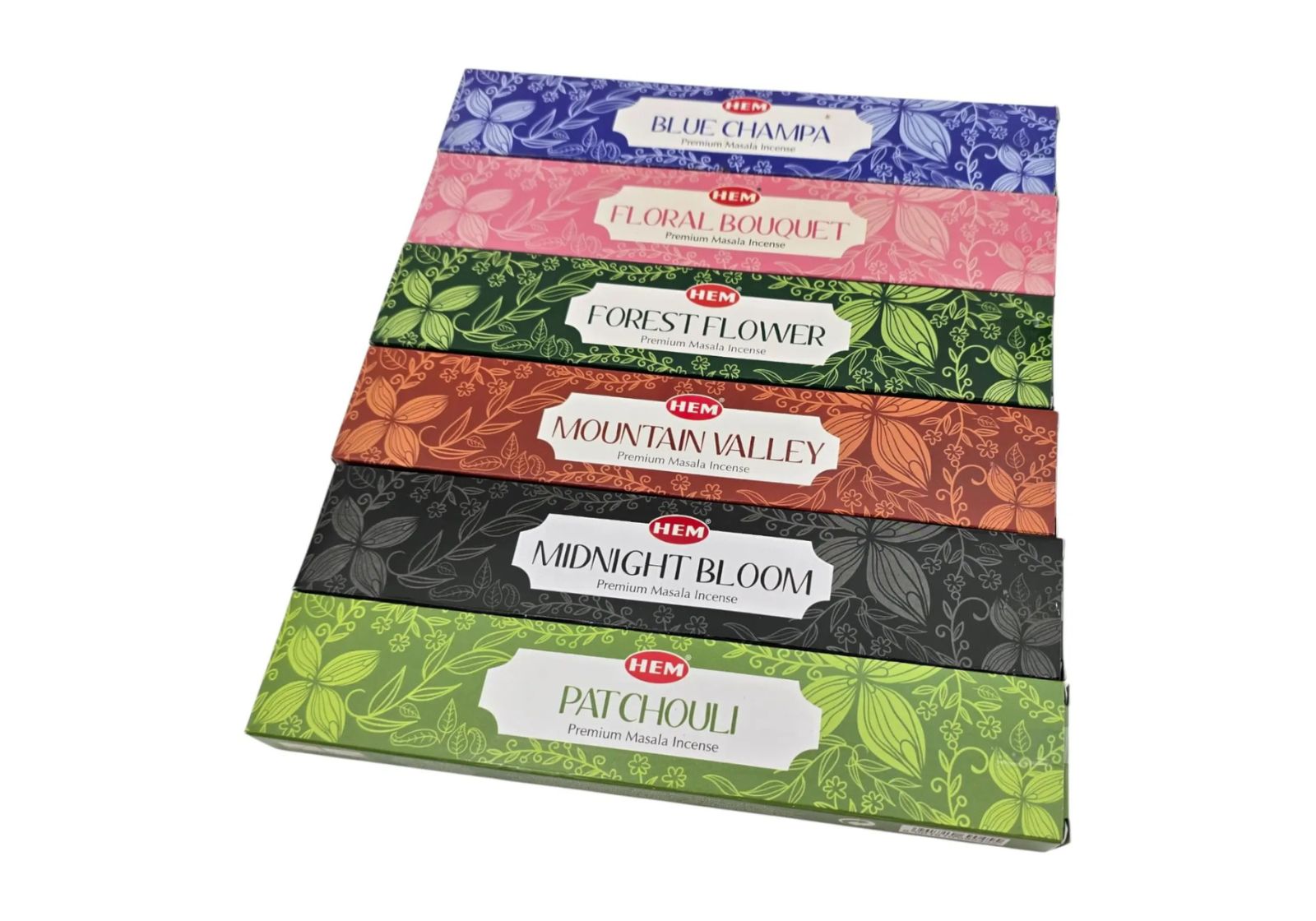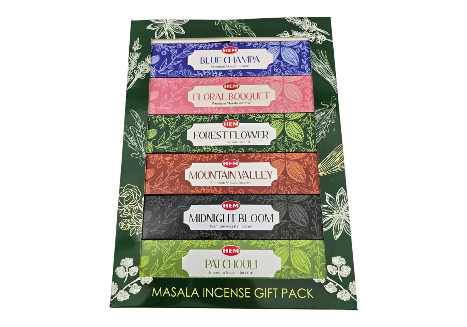 HEM Masala — це автентичні індійські пахощі ручної роботи, створені з натуральних інгредієнтів: квіткового пилку, трав, прянощів та олій. У наборі зібрано 6 унікальних ароматів, кожен із яких впливає по-своєму: допомагає розслабитися, зняти стрес, покращити сон або наповнити дім свіжістю.