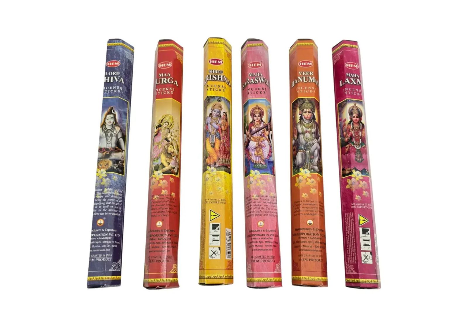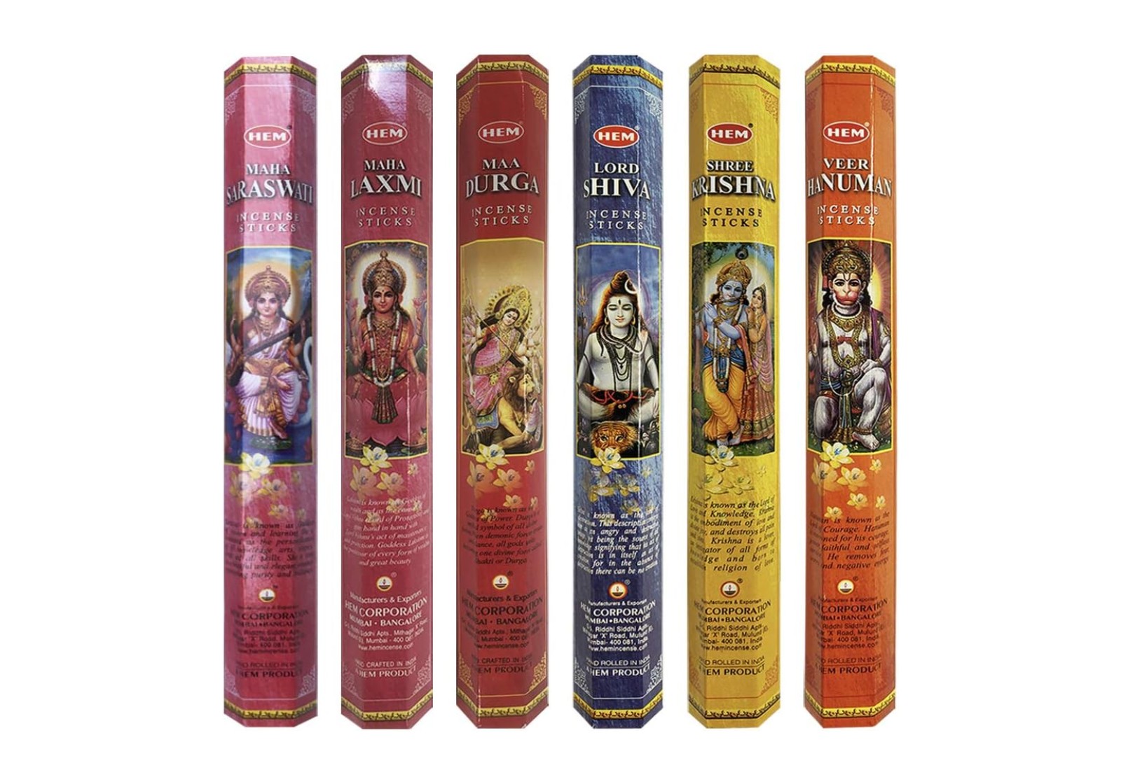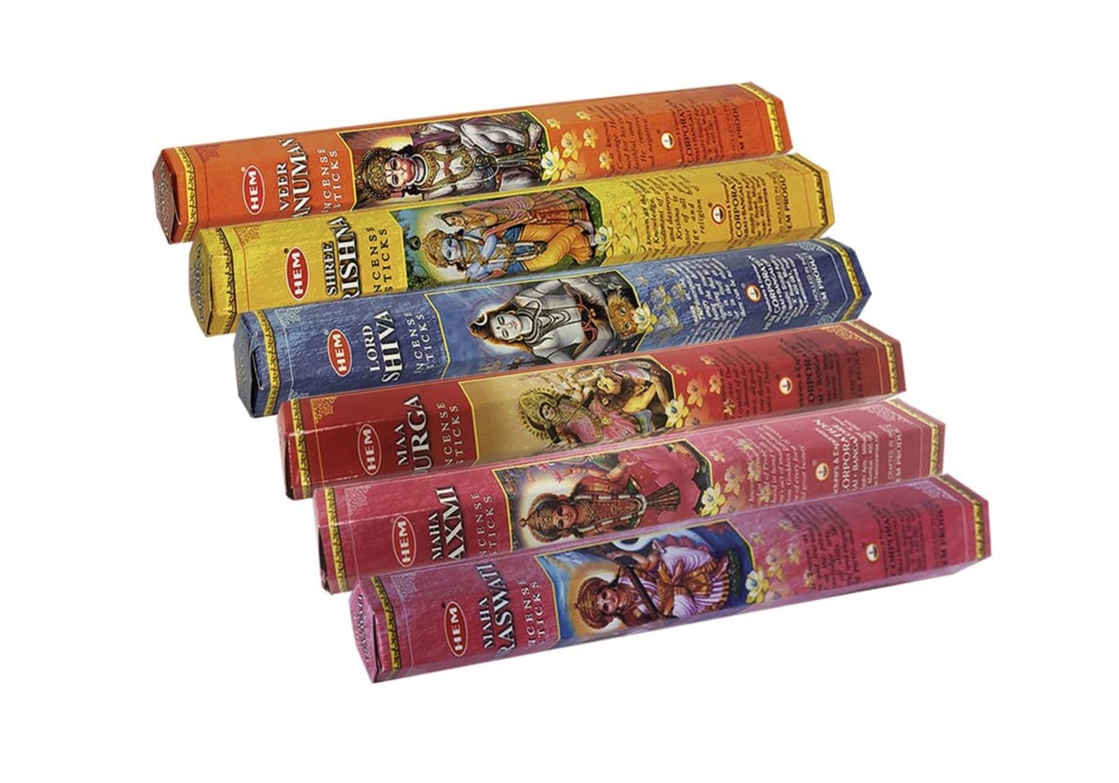 Подарунковий набір аромапаличок HEM «God Series» — це поєднання давніх традицій, духовної енергетики та автентичних індійських ароматів. У комплект входять 6 видів пахощів, присвячених індуїстським божествам: Шива, Дурга, Хануман, Крішна, Сарасваті та Лакшмі. Кожна паличка створена вручну з натуральних інгредієнтів за класичними рецептами.