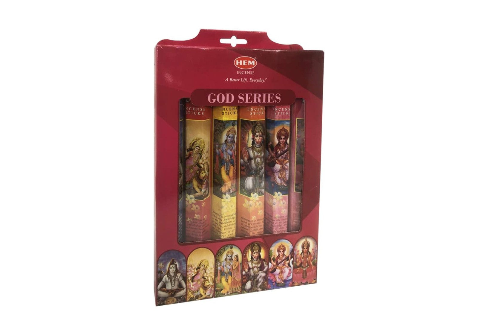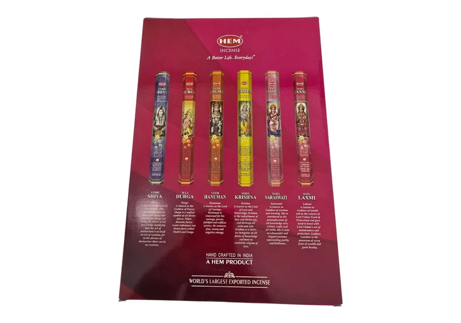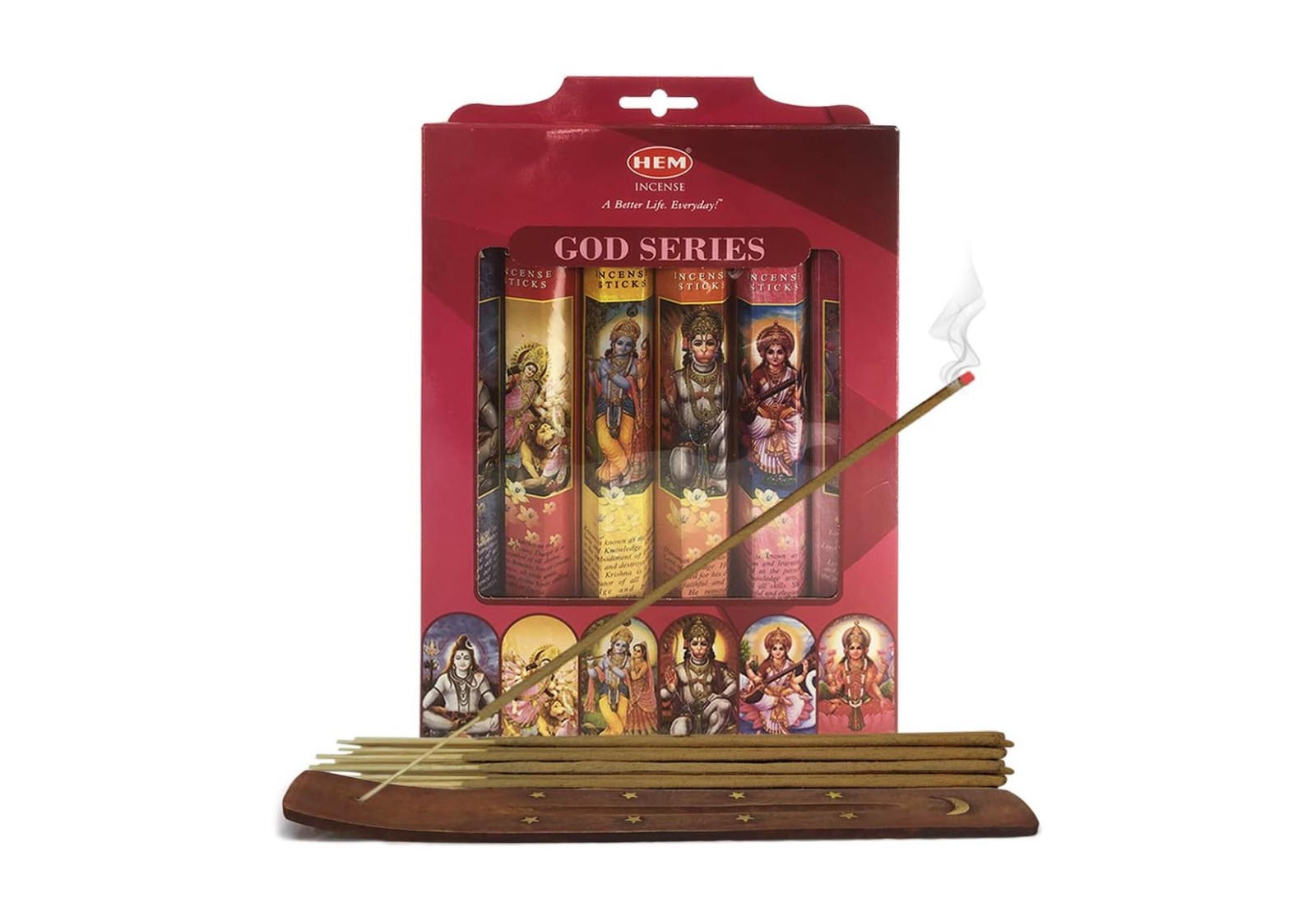 Подарунковий набір аромапаличок HEM «God Series» — це поєднання давніх традицій, духовної енергетики та автентичних індійських ароматів. У комплект входять 6 видів пахощів, присвячених індуїстським божествам: Шива, Дурга, Хануман, Крішна, Сарасваті та Лакшмі. Кожна паличка створена вручну з натуральних інгредієнтів за класичними рецептами.