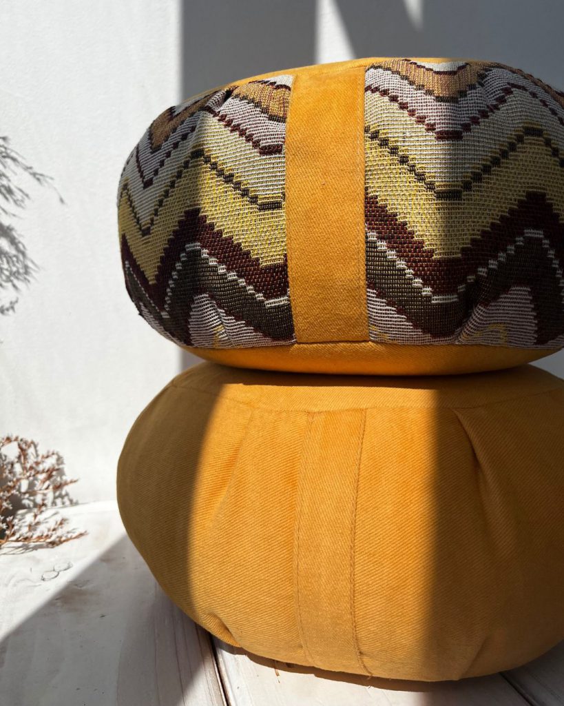 Гарний дизайн дозволяє використовувати подушку не лише для медитативних практик та відпочинку, але й як частину інтер’єру. Це зручний пуф для сидіння під час чайних церемоній, музичних джемів, ігор для підлоги, спілкування з друзями.
