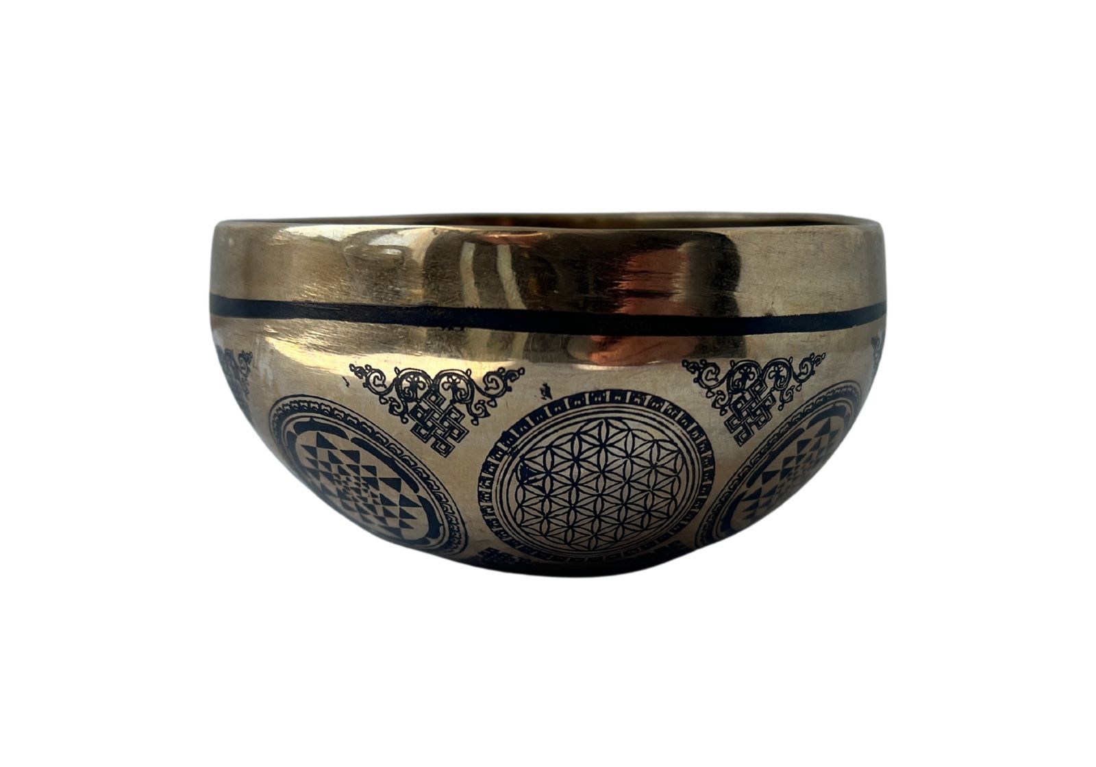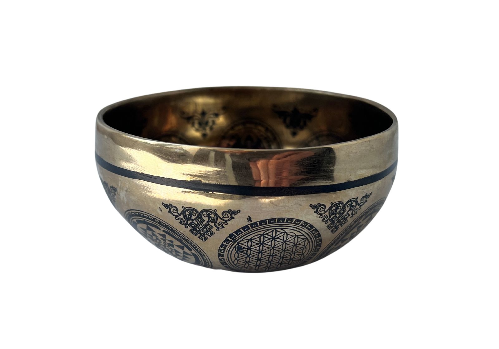 Квітка життя – сакральний геометричним малюнком на зовнішньому ободі чаші. Гармонізує простір, сприяє енергетичній рівновазі.