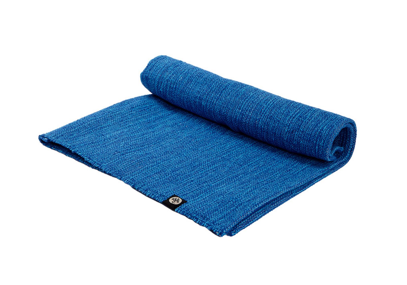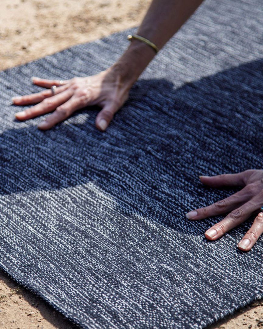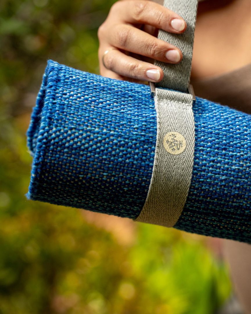 Shala Yoga Rug Manduka — це тканий килимок ручної роботи, створений майстрами-ткачами в Індії. Він виготовлений із 95% переробленої бавовни (відходи текстильного виробництва) та 5% поліестеру. Цей килимок — не просто аксесуар: він відсилає до ранніх йогічних традицій, коли для практики використовували ткані покриття, та водночас підтримує ремесло індійських майстрів, які зберігають мистецтво ручного ткацтва.